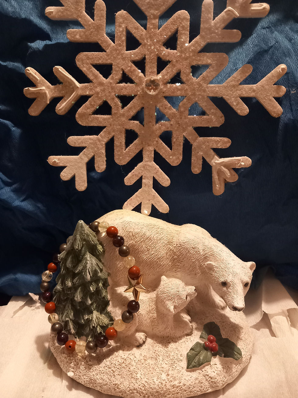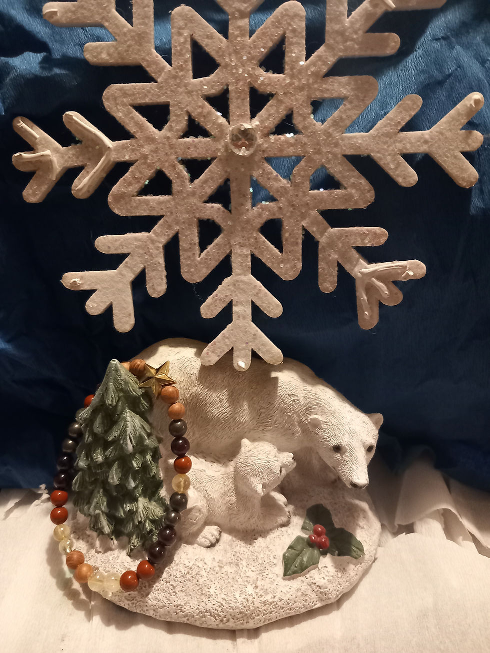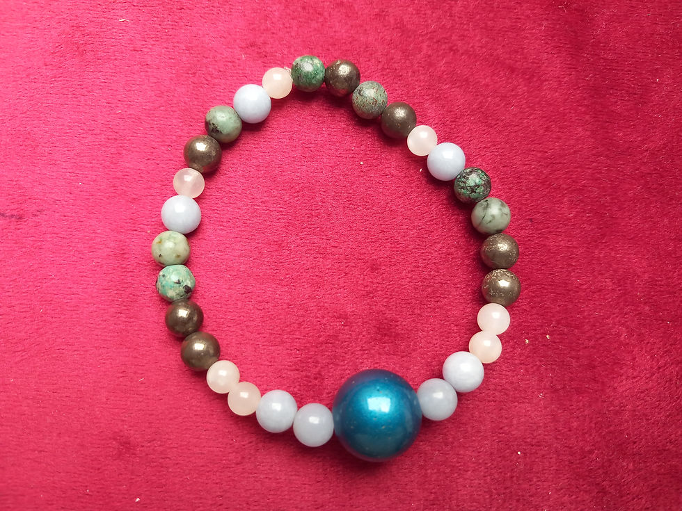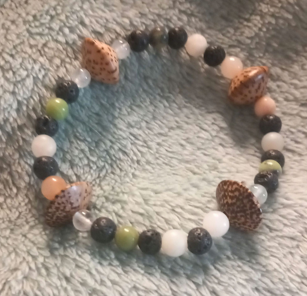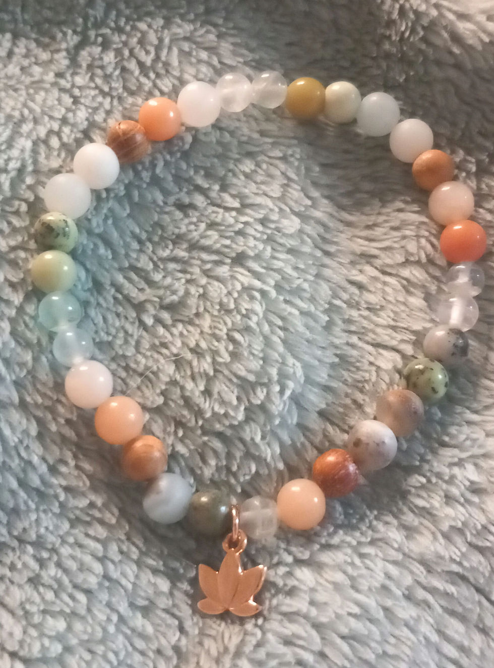 Bracelet du printemps avec perles de bois et fleur de lotus